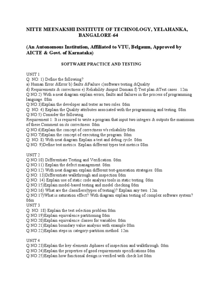 SOFTWARE PRACTICE AND TESTING