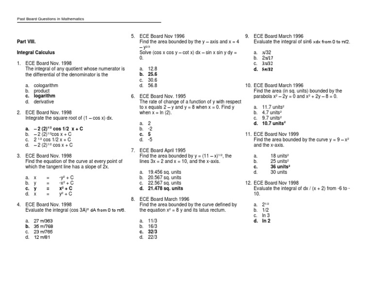 b. – 2 (2)1/2cos x + C c. 5 11. ECE Board Nov 1999