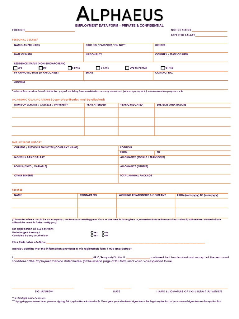 EMPLOYMENT DATA FORM – PRIVATE & CONFIDENTIAL