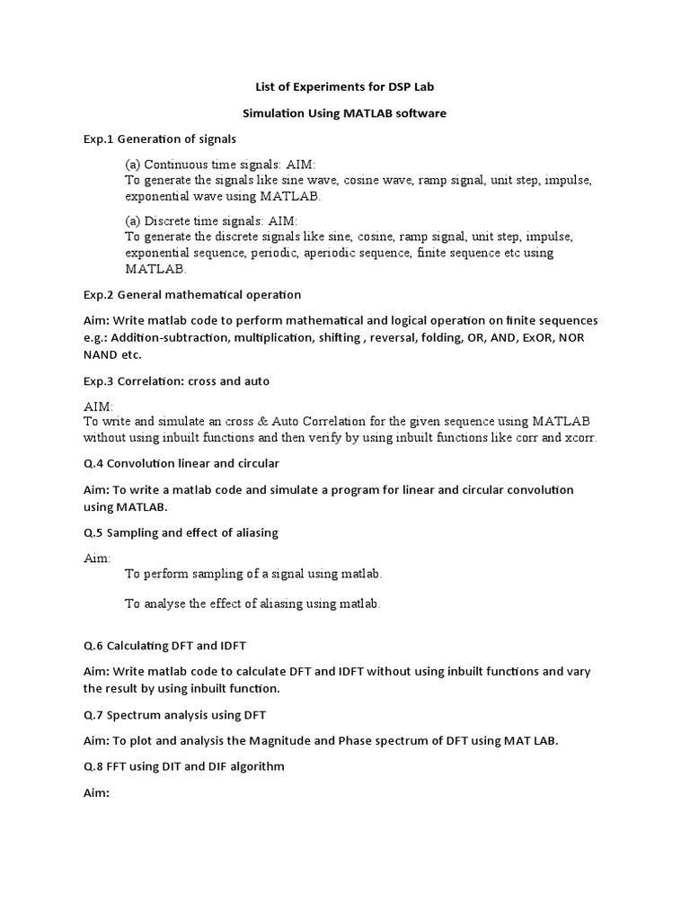 Aim: Write matlab code to calculate DFT and IDFT without using inbuilt functions and vary
