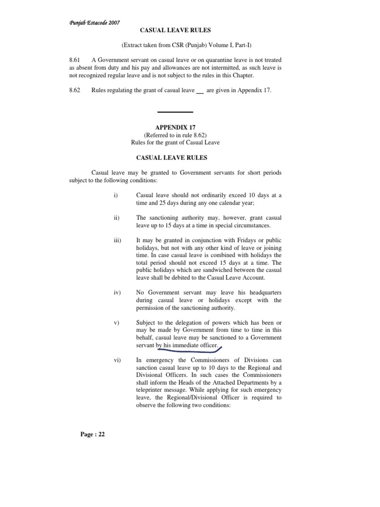 (INSTRUCTIONS ABOUT CASUAL LEAVE)