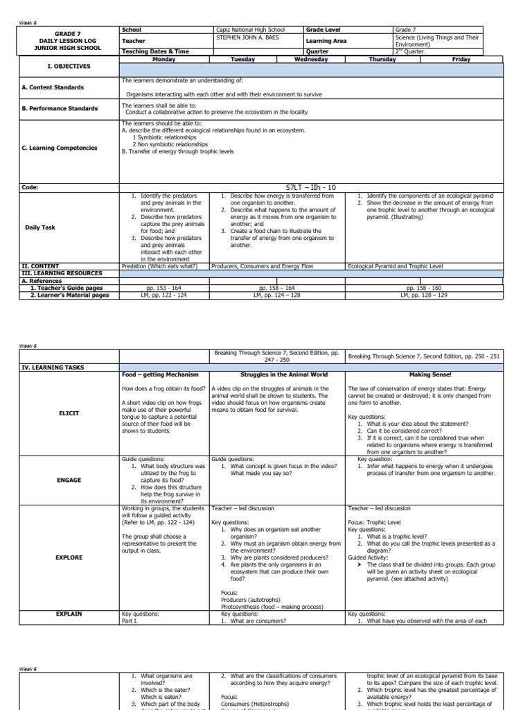 (Refer to LM, pp. 122 - 124) Key questions: Focus: Trophic Level