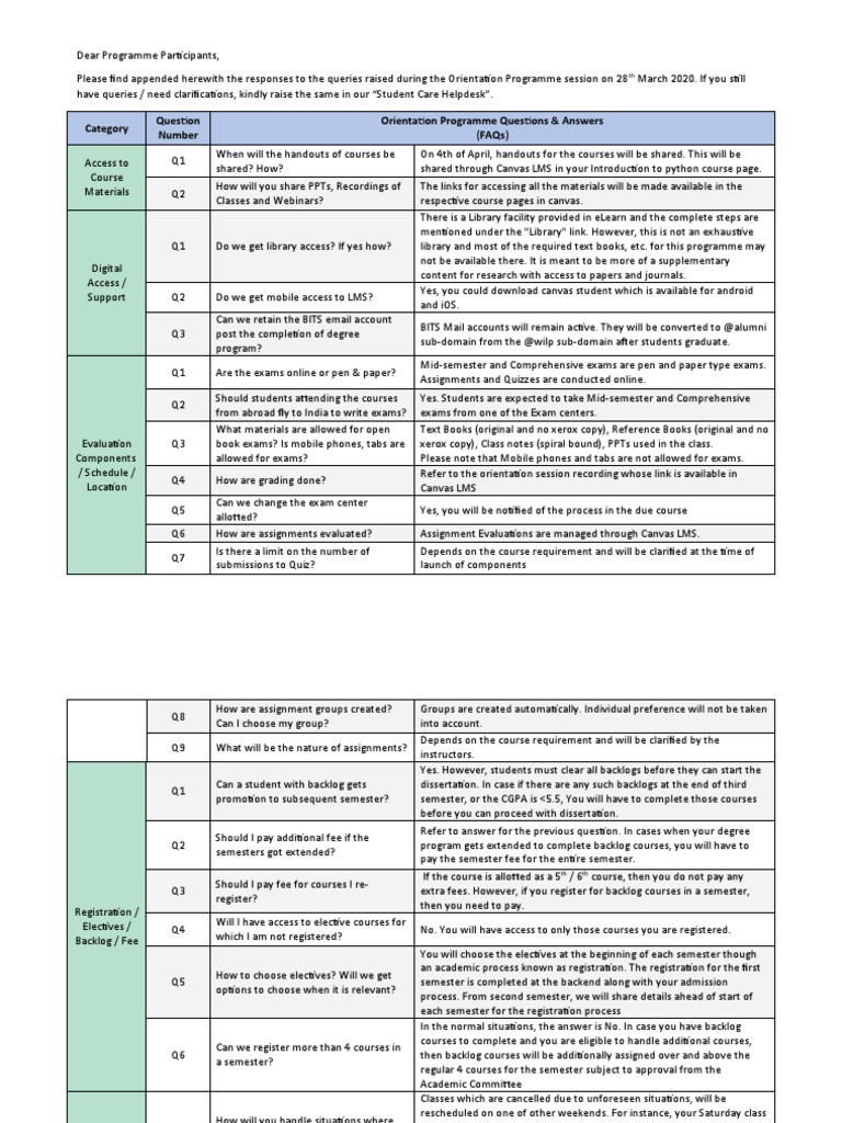 Please find appended herewith the responses to the queries raised during the Orientation Programme session on 28 th March 2020. If you still