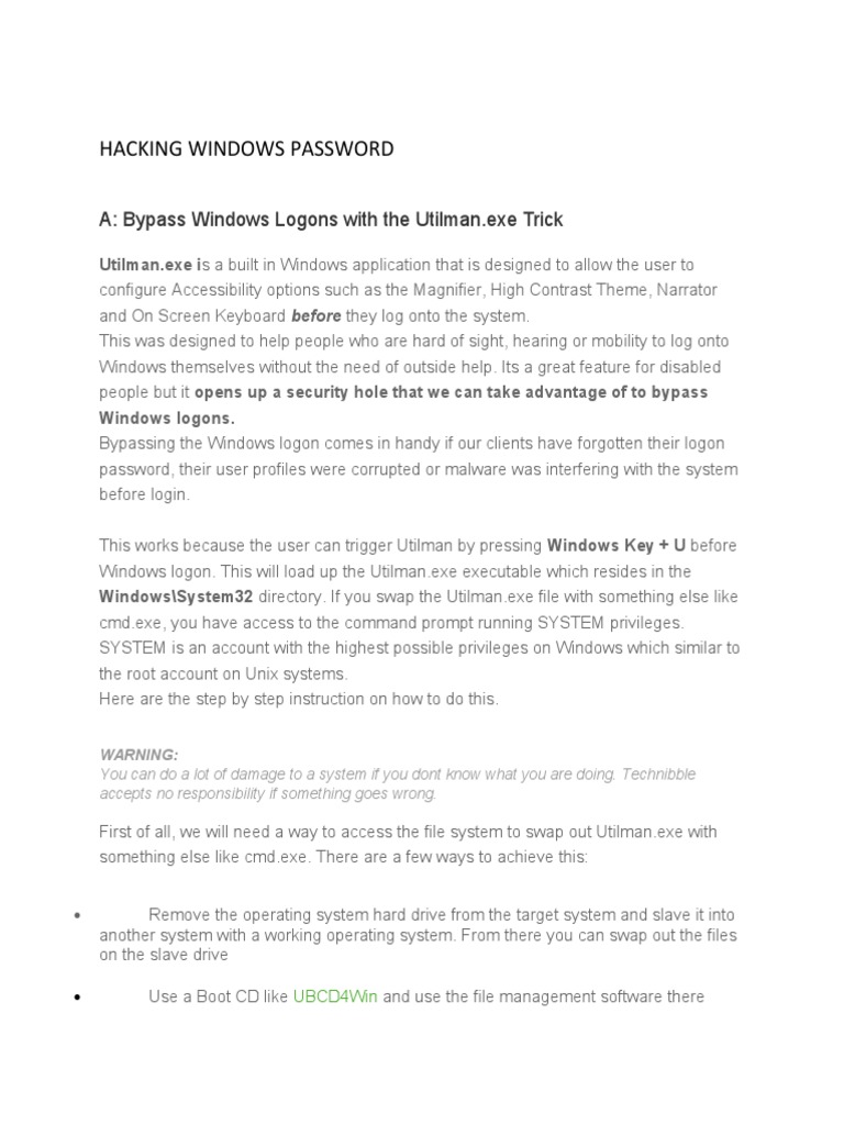 Bypassing the Windows logon comes in handy if our clients have forgotten their logon