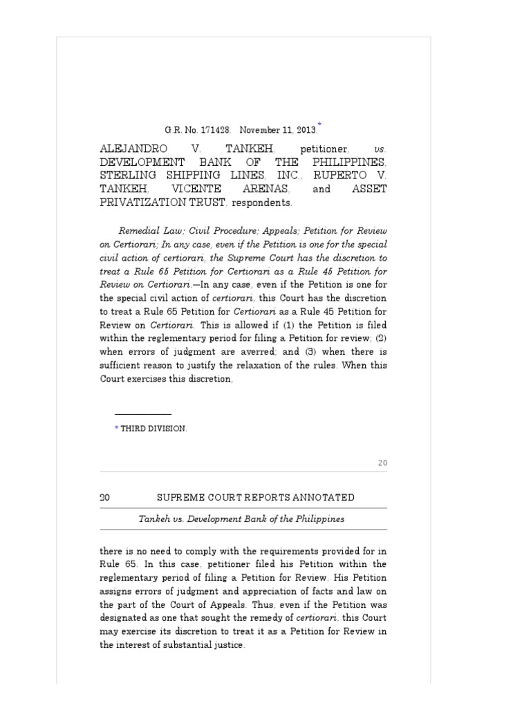Tankeh vs. Development Bank of the Philippines