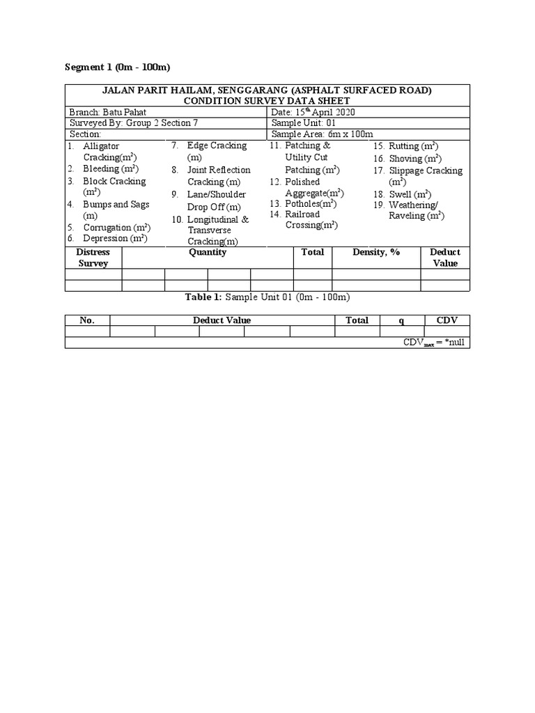 3. Block Cracking Cracking (m) 12. Polished (m2)