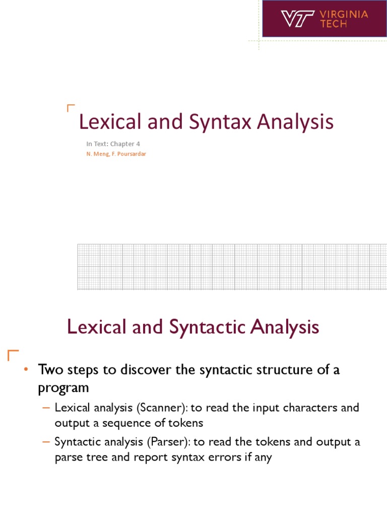 • Parsers usually do not analyze lexemes; that is done by a lexical