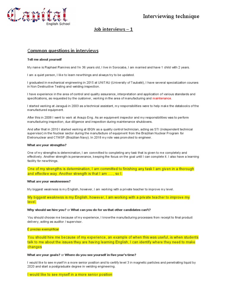 My biggest weakness is my English, however, I am working with a private teacher to improve my level.