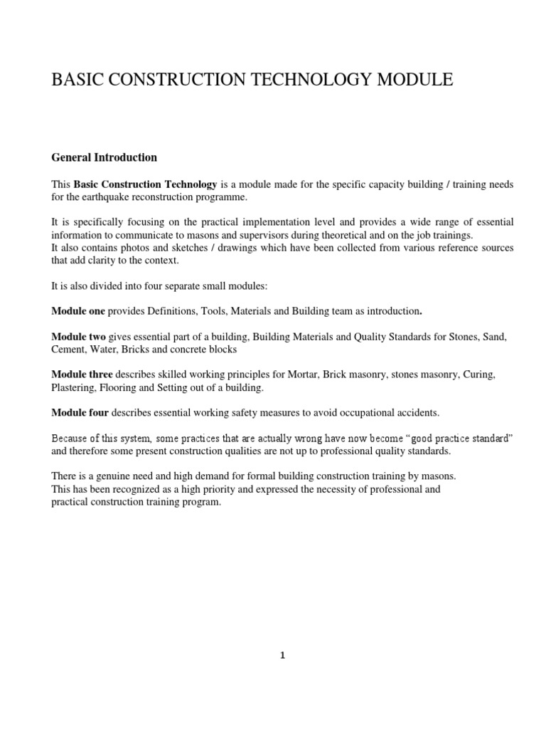 Basic Construction Technology Module: General Introduction