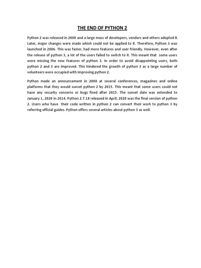 the release of python 3, a lot of the users failed to switch to it. This meant that some users