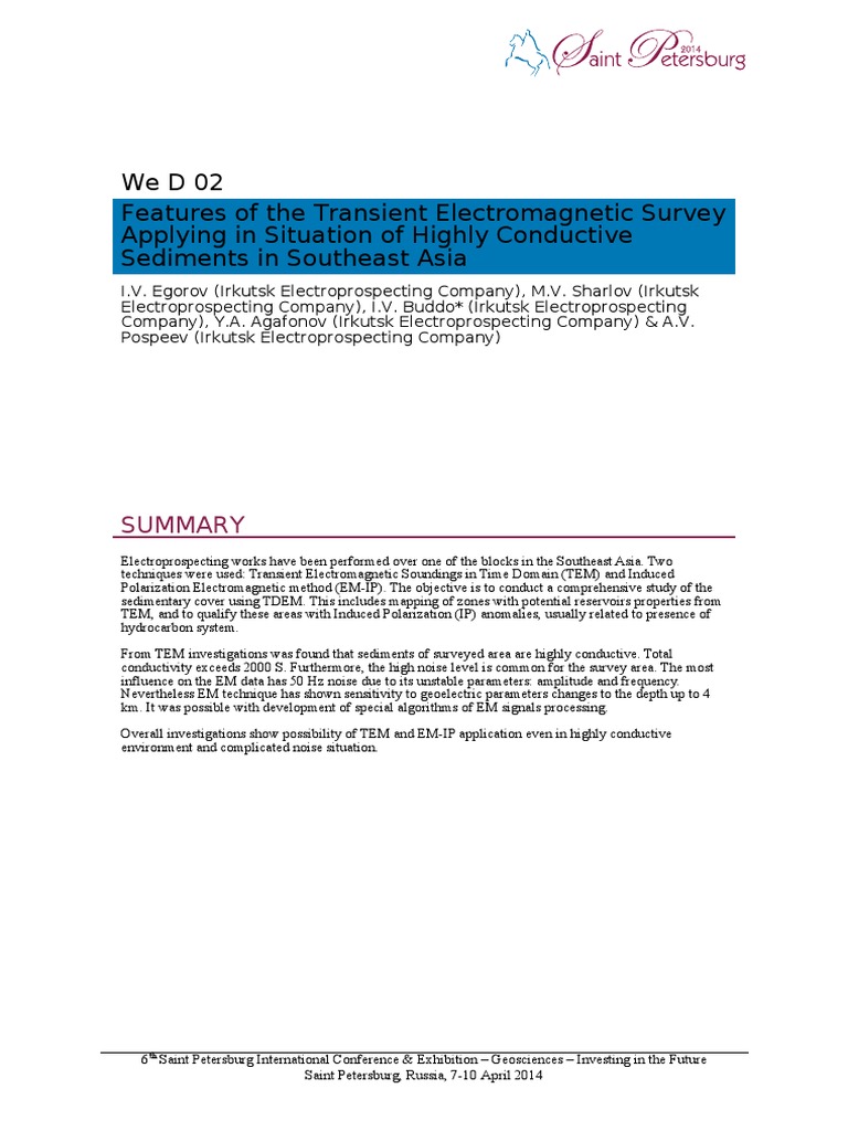 Wed02 Features of The Transient Electromagnetic Survey Applying in Situation of Highly Conductive Sediments in Southeast Asia