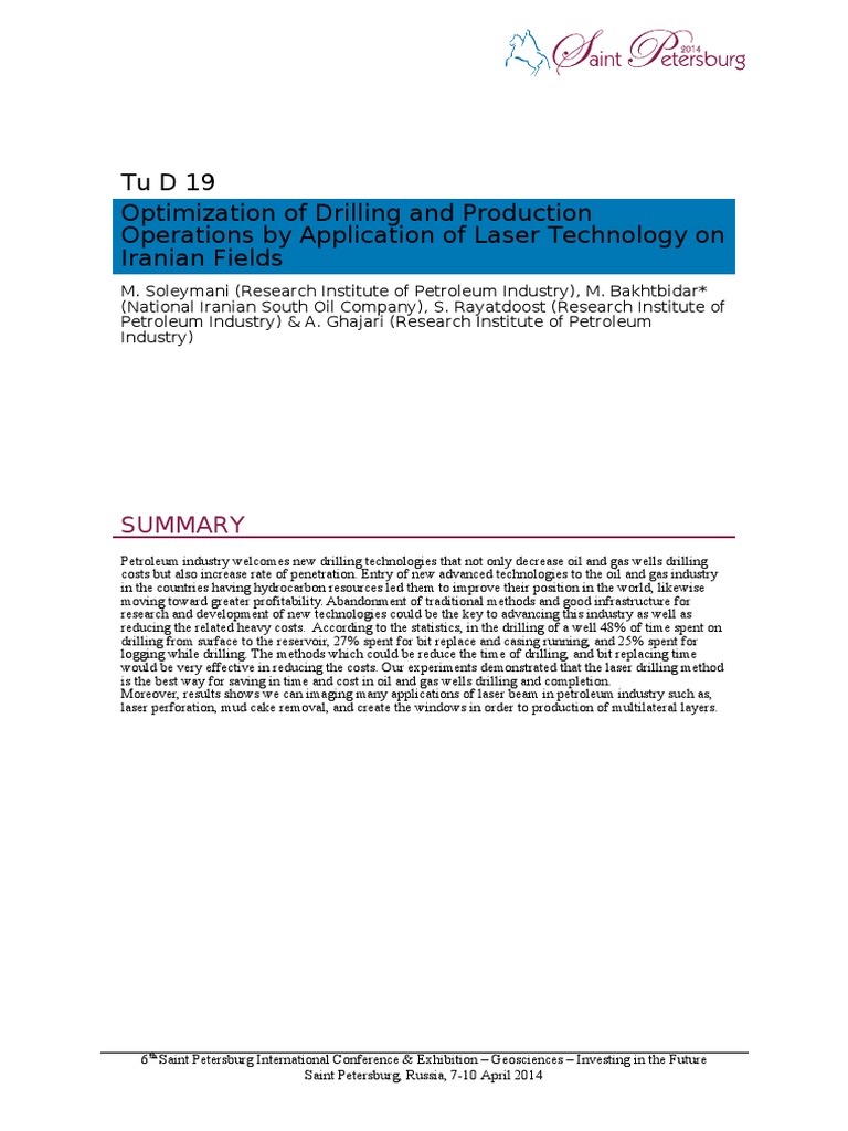 Tud19 Optimization of Drilling and Production Operations by Application of Laser Technology On Iranian Fields