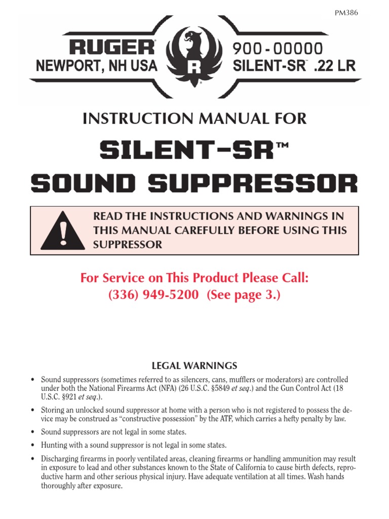 If you have any questions with regard to the performance of your RUGER® SILENT-SR™
