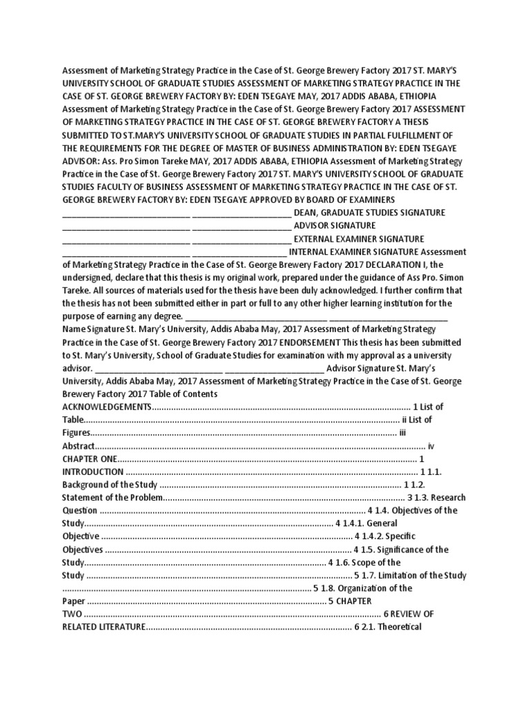 Assessment of Marketing Strategy Practice in the Case of St. George Brewery Factory 2017 ASSESSMENT