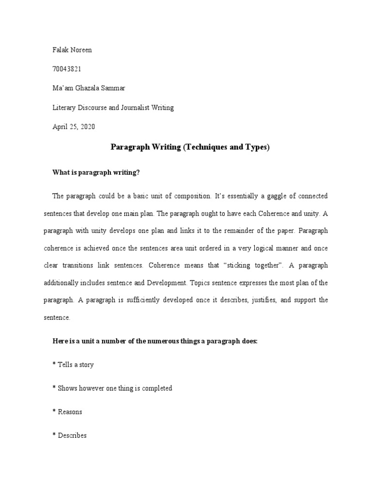 Paragraph Writing (Techniques and Types)