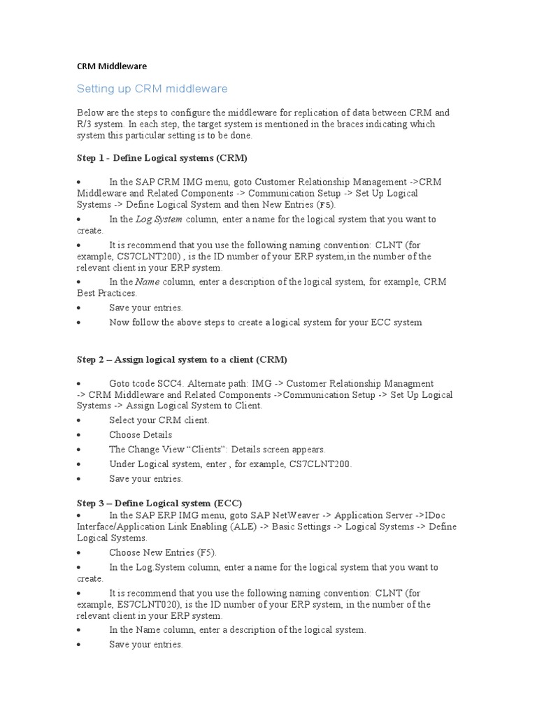 R/3 system to connect to CRM system and vice verse. Creation of RFC user is similar to