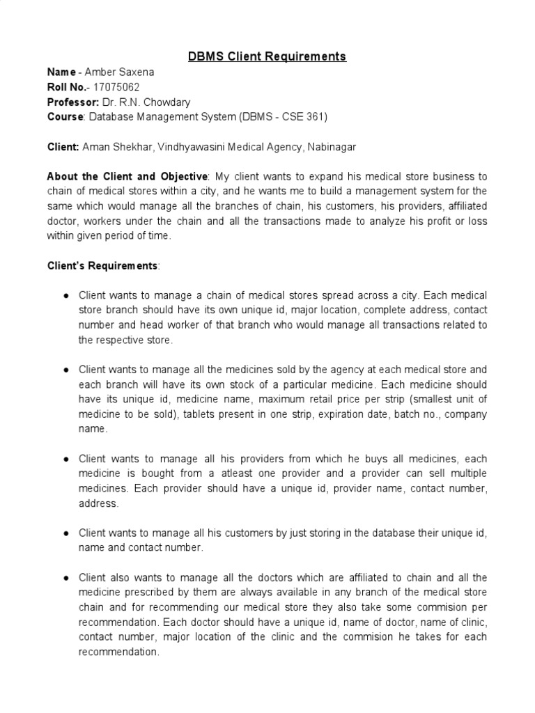 ● Client wants to manage all the medicines sold by the agency at each medical store and