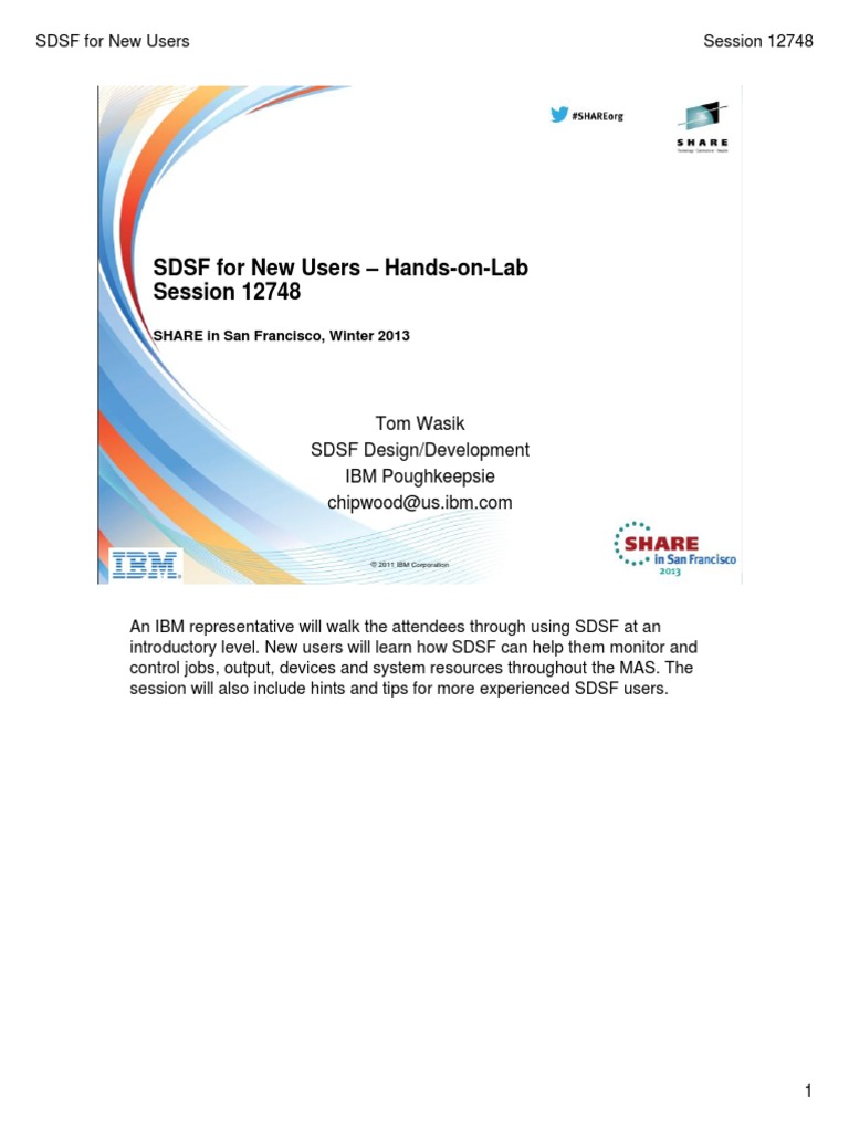 SDSF For New Users - Hands-on-Lab Session 12748: Tom Wasik SDSF Design/Development IBM Poughkeepsie