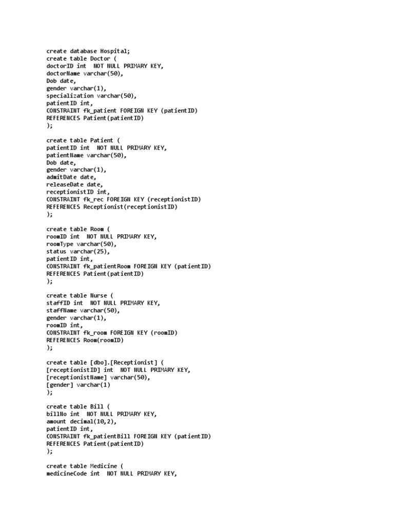 create database Hospital;