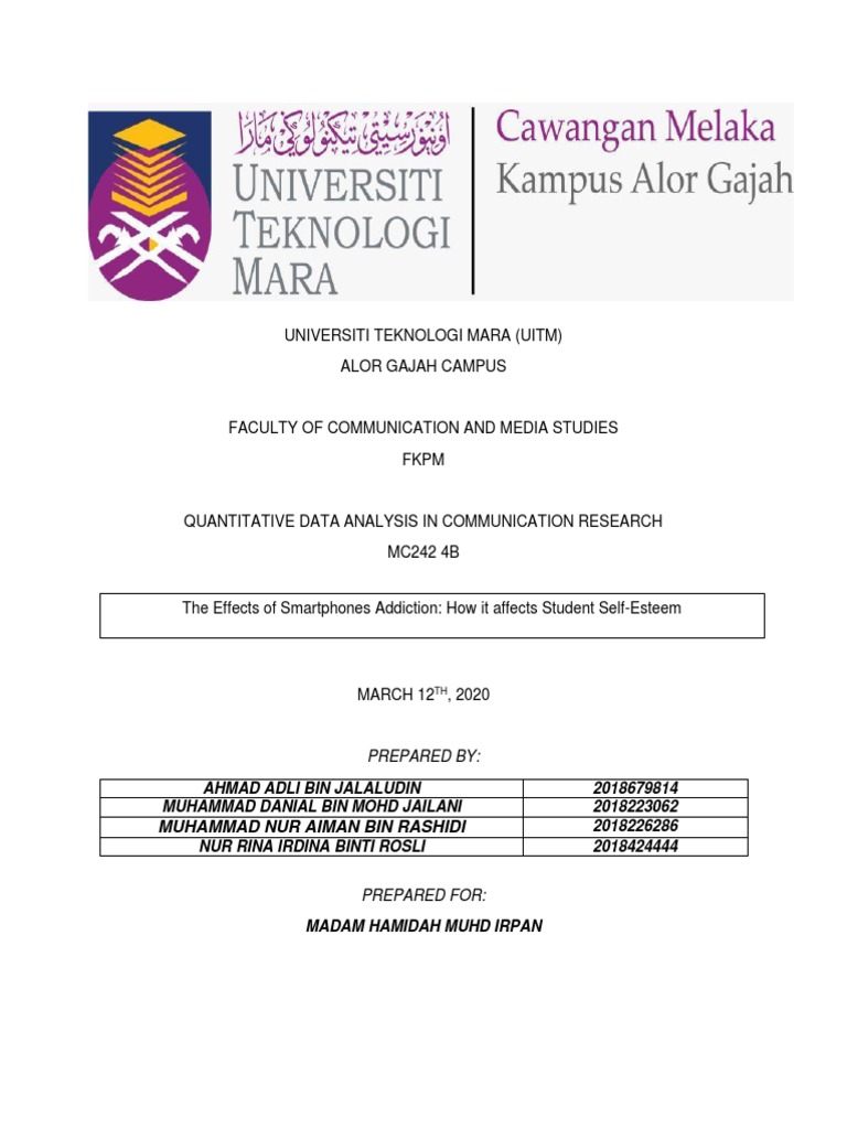 The Effects of Smartphones Addiction: How it affects Student Self-Esteem