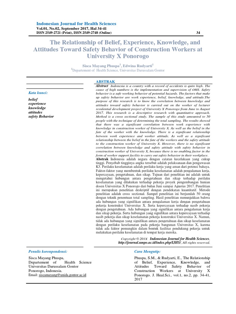 Kata kunci: behavior is a safe working behavior of potential hazards. The factors that make