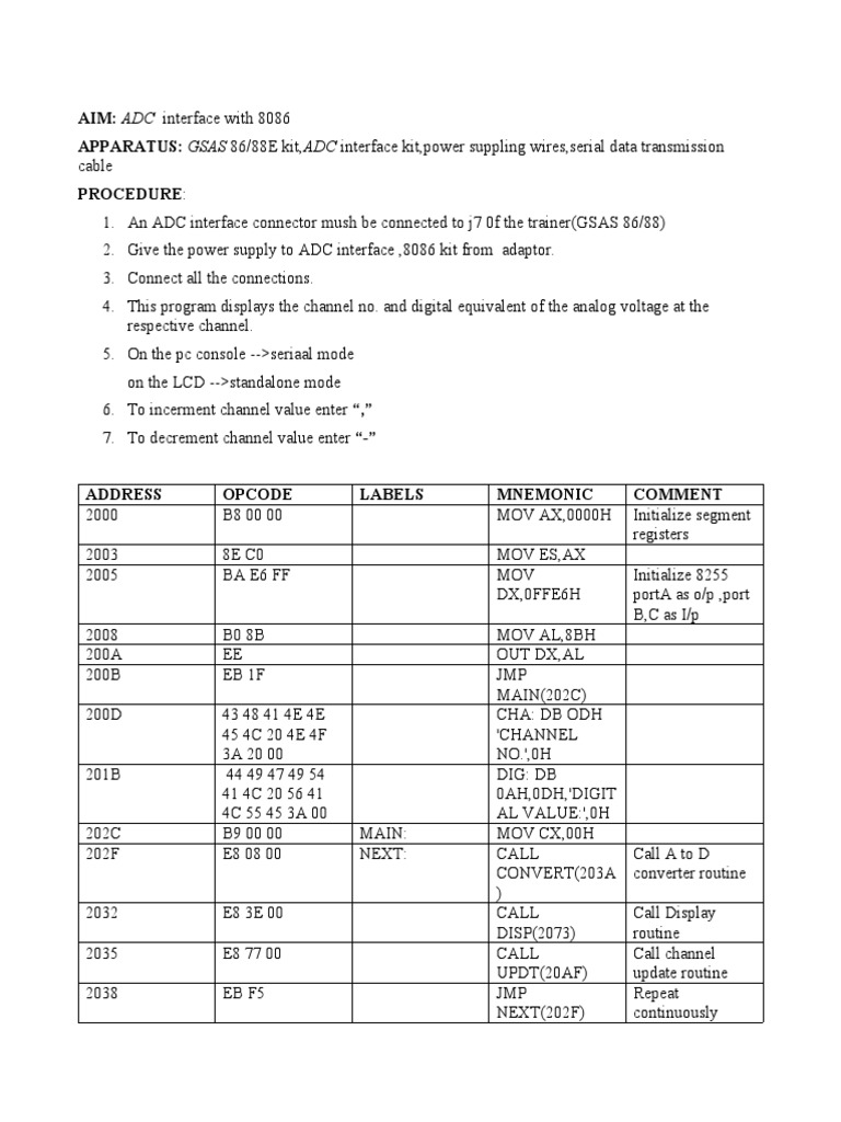 203A B0 00 CONVERT: MOV AL,00H Initialize channel