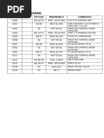 ADDRESS OPCODE LABELS MNEMONIC COMMENT