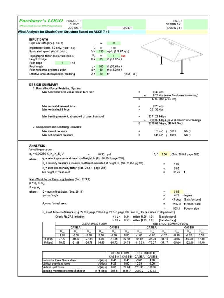 Wind Analysis for Shade Open Structure Based on ASCE 7-02 / IBC 2003