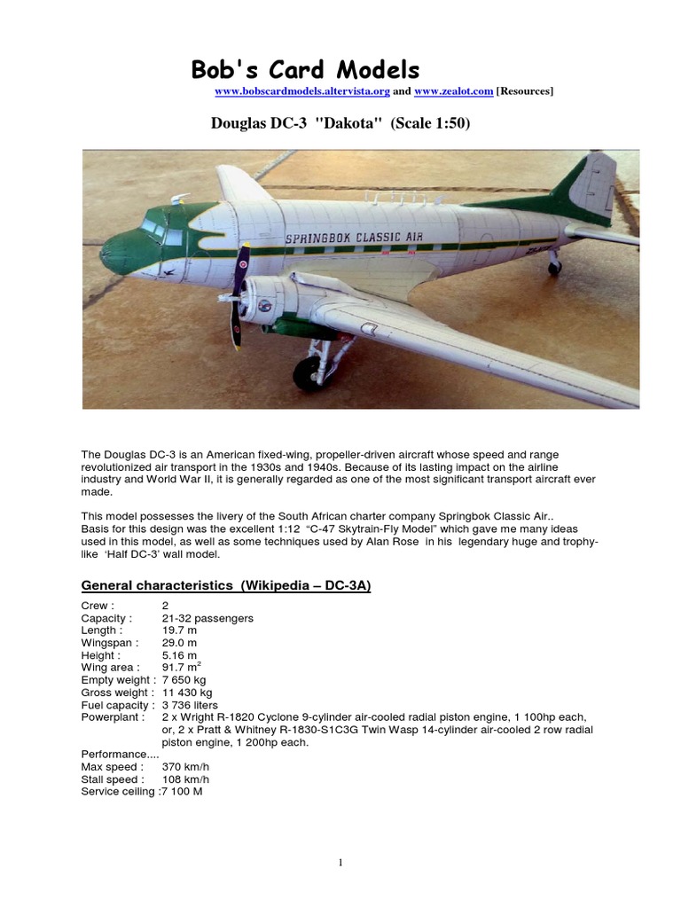 Douglas DC-3 "Dakota" (Scale 1:50)