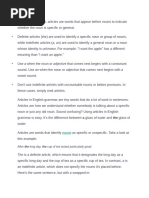 Articles are words that define a noun as specific or unspecific. Consider the