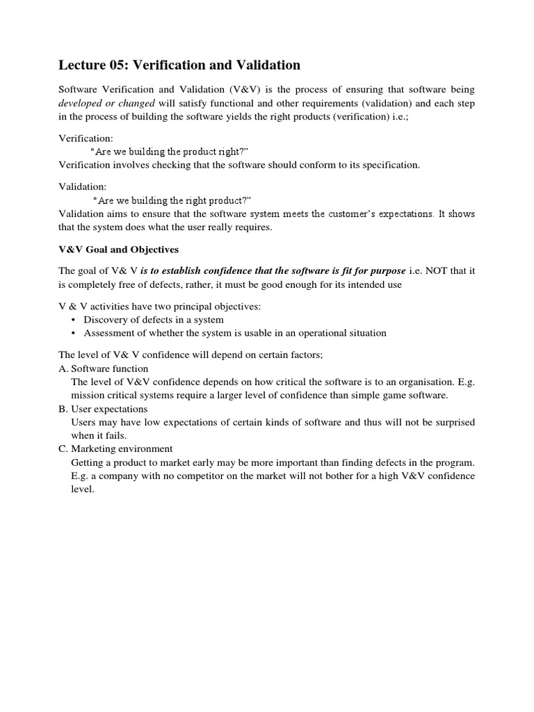 The level of V&V confidence depends on how critical the software is to an organisation. E.g.