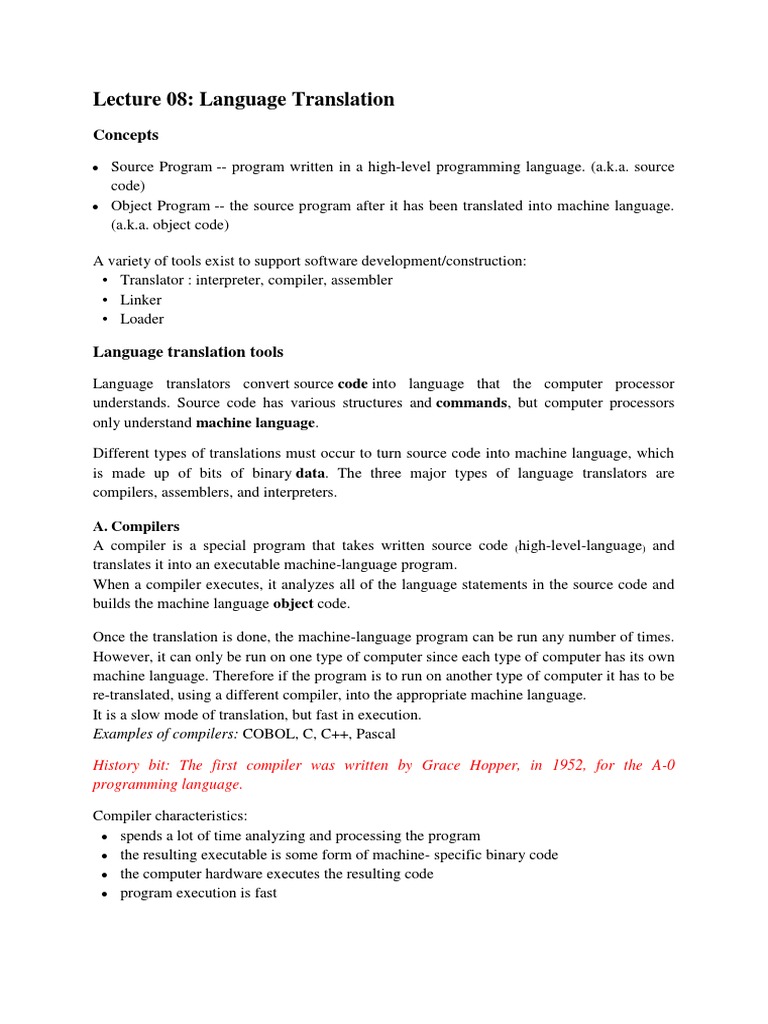 • Compilers translate a source (human-writable) program to an executable (machine-
