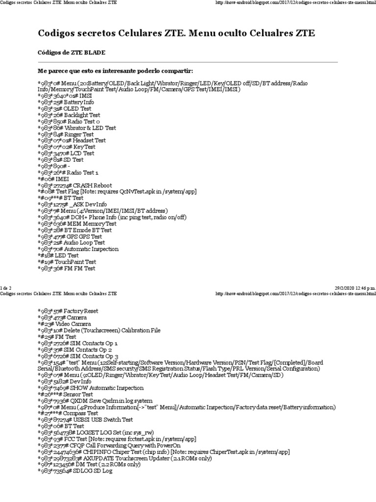 Codigos secretos Celulares ZTE. Menu oculto Celualres ZTE http://now-android.blogspot.com/2017/12/codigos-secretos-celulares-zte-menu.