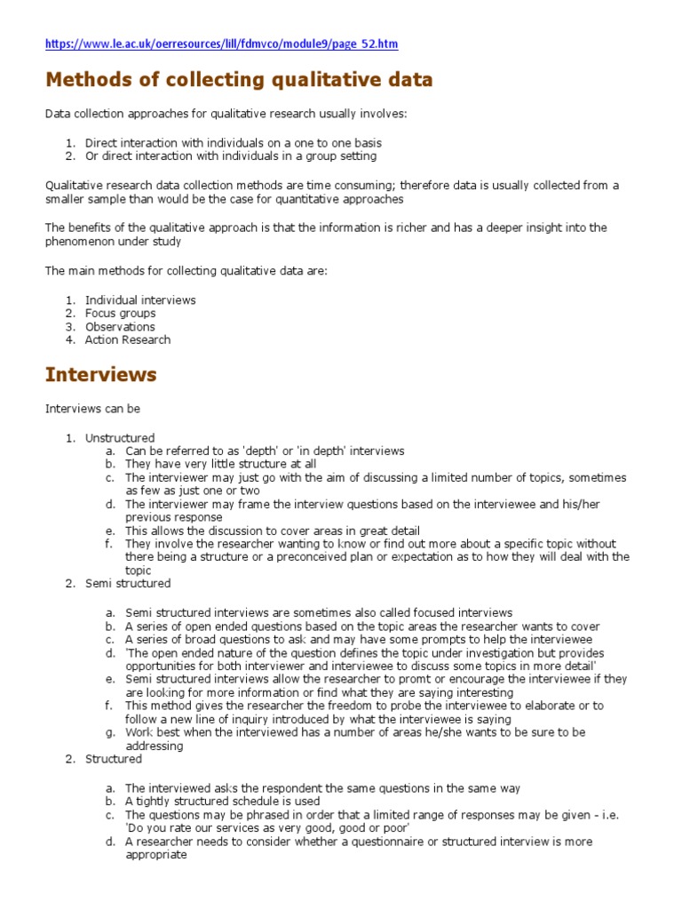 f. This method gives the researcher the freedom to probe the interviewee to elaborate or to