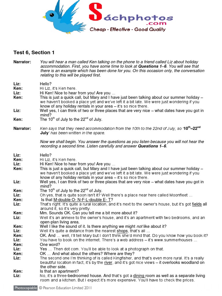 accommodation. First, you have some time to look at Questions 1–6. You will see that