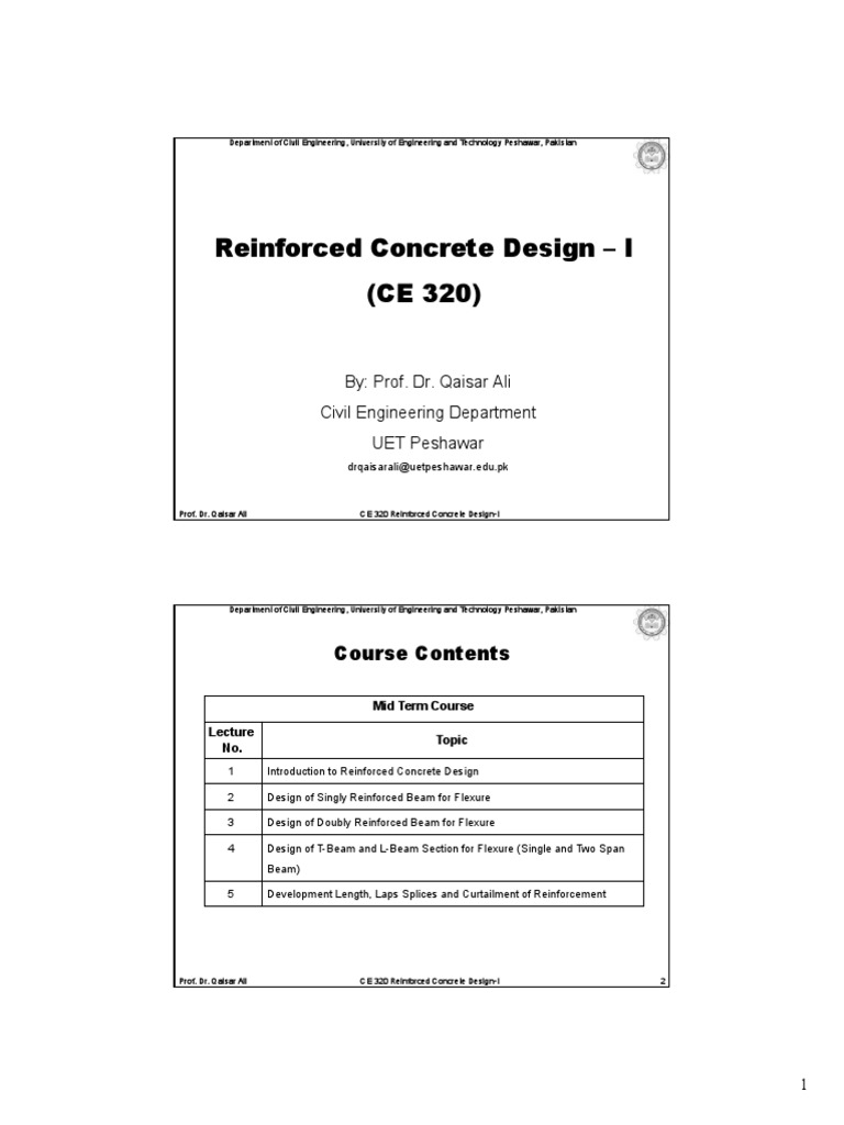 Prof. Dr. Qaisar Ali CE 320 Reinforced Concrete Design-I 2