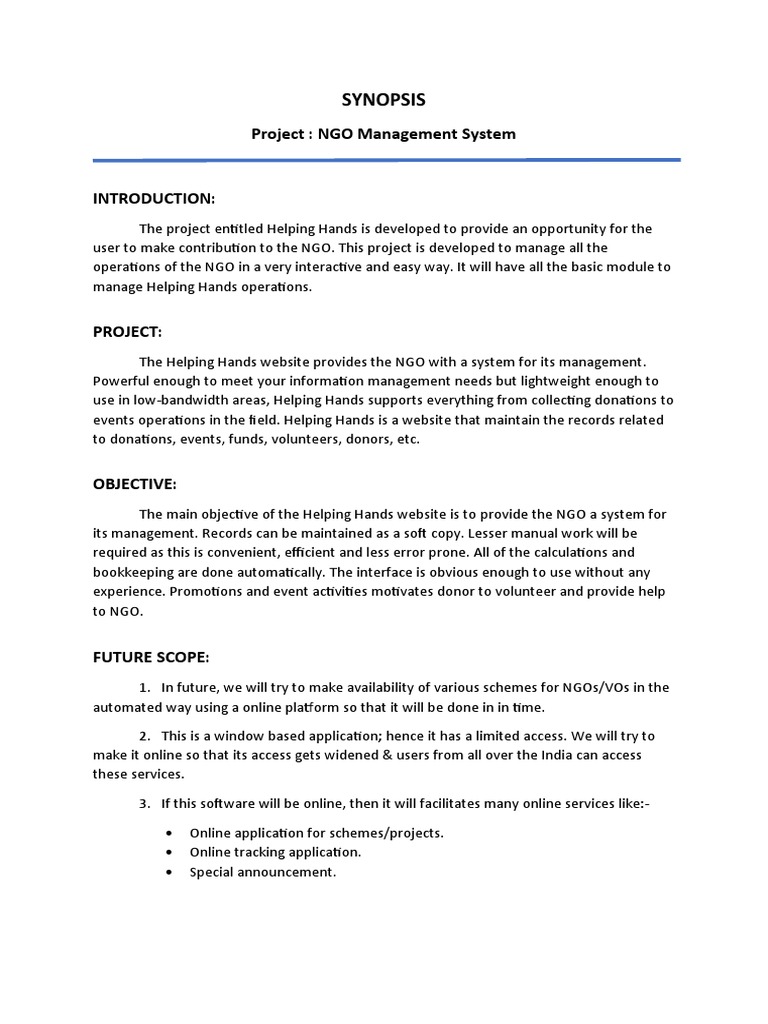 The main objective of the Helping Hands website is to provide the NGO a system for