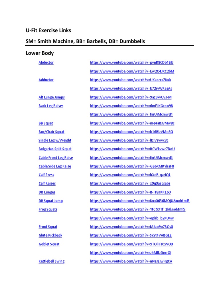 SM= Smith Machine, BB= Barbells, DB= Dumbbells