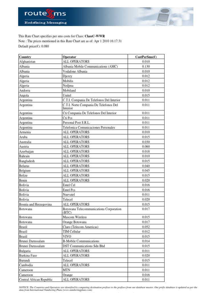 NOTICE: The Countries and Operators are identified by comparing destination prefixes to the prefixes from our database master. Our prefix database is updated as per the