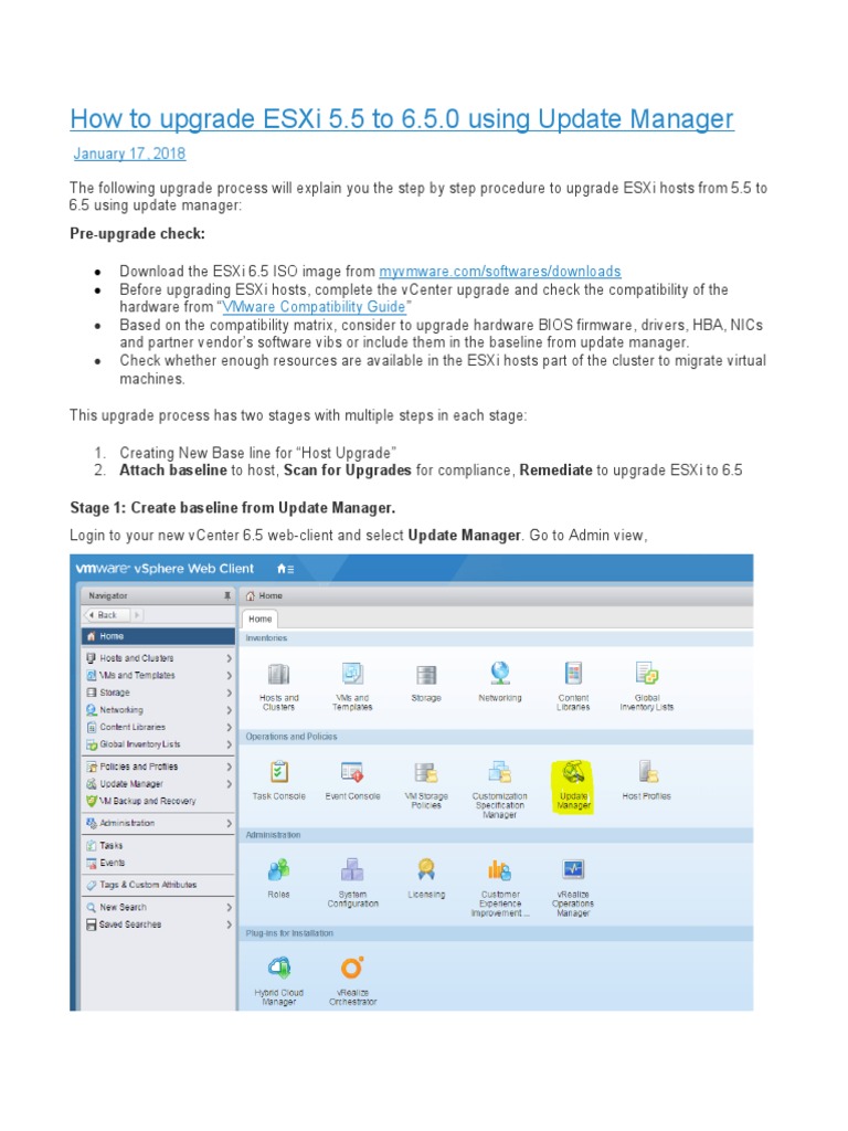 The following upgrade process will explain you the step by step procedure to upgrade ESXi hosts from 5.5 to