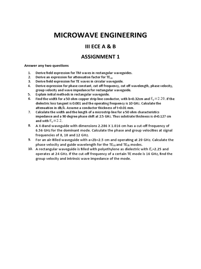 9. For an air-filled waveguide with a=2b=2.5 cm and operating at 20 GHz. Calculate the
