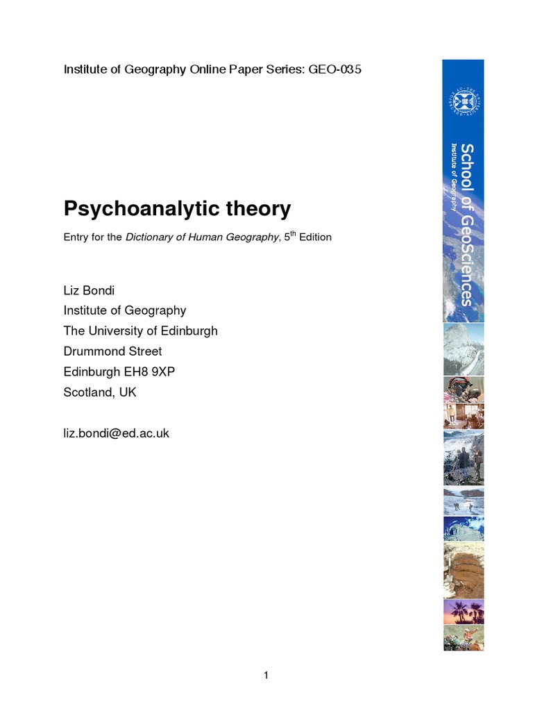 Liz Bondi (2007) Psychoanalytic theory, online papers archived by the Institute of