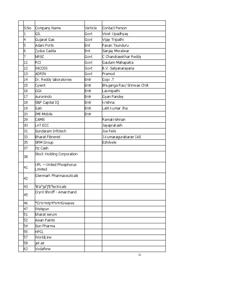 No Company Name Verticle Contact Person