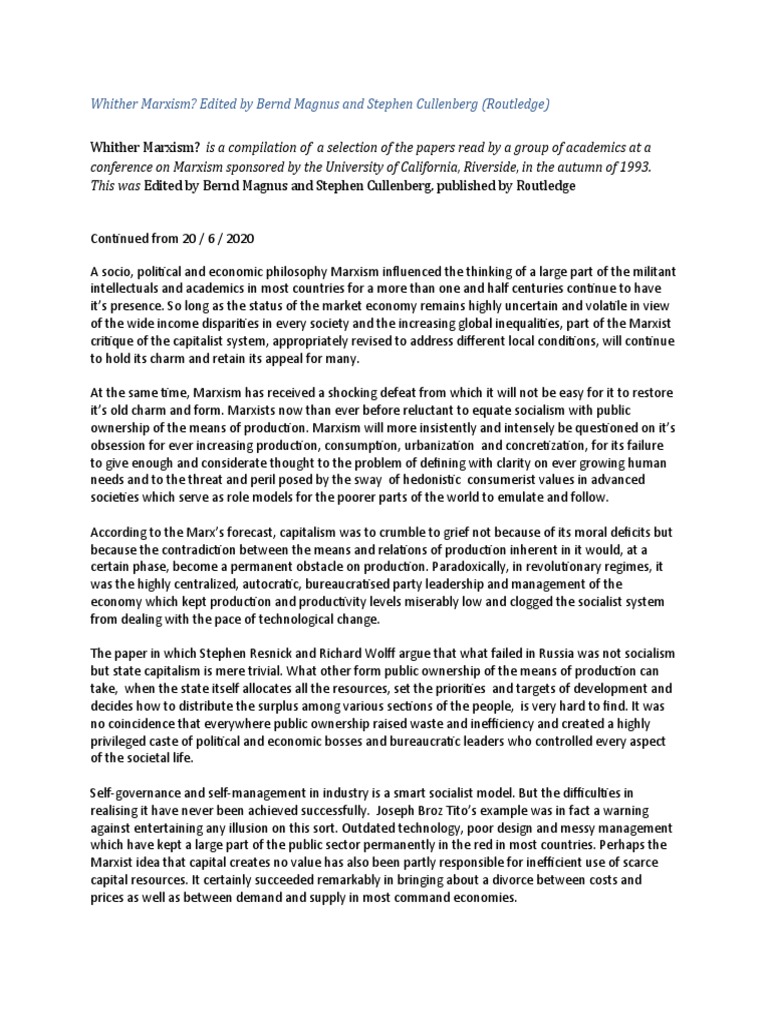 If neo-Marxists have any solution to these problems, there is no hint of this in the papers in the present
