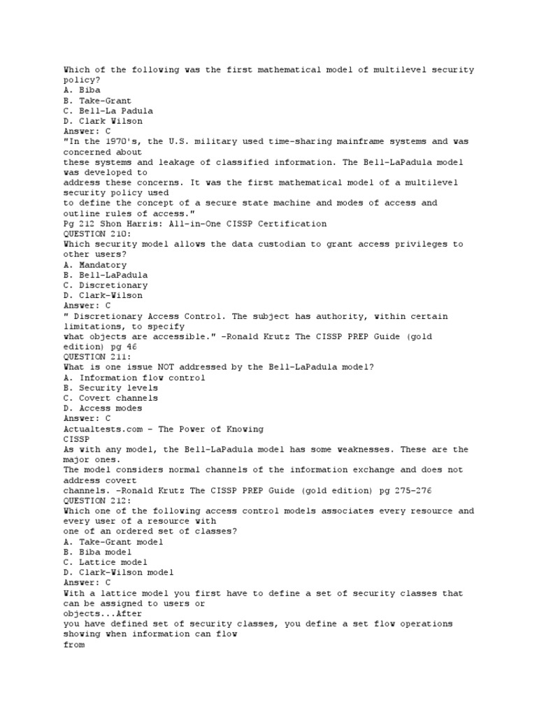 what objects are accessible." -Ronald Krutz The CISSP PREP Guide (gold