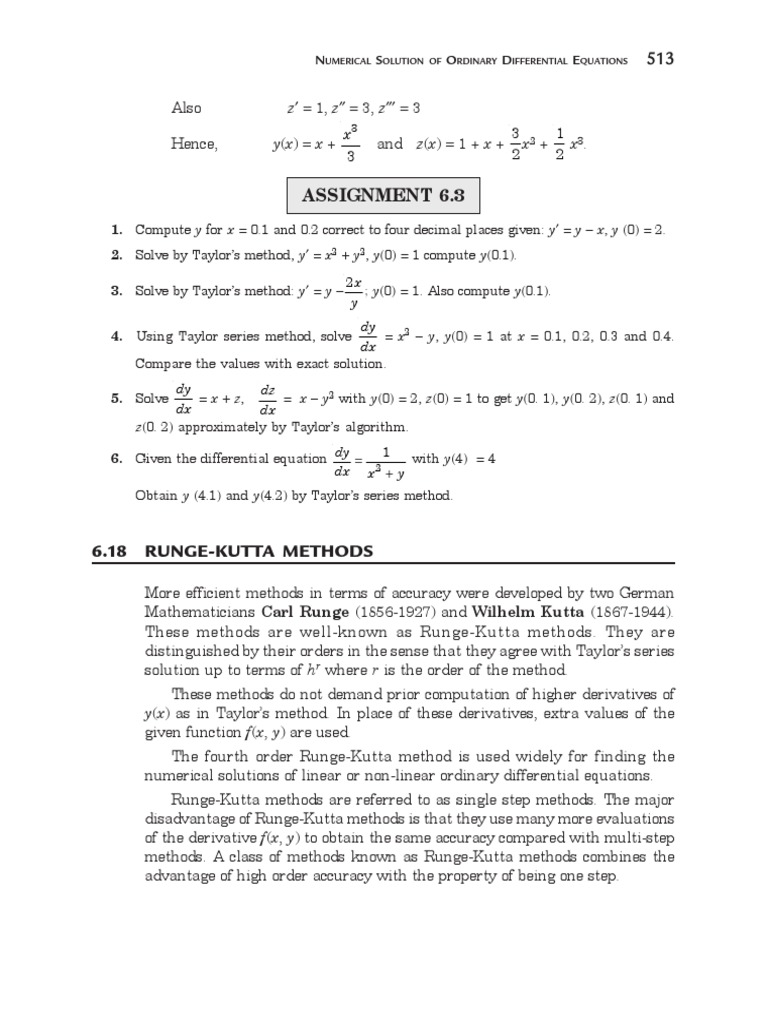 NUMERICAL SOLUTION OF ORDINARY DIFFERENTIAL EQUATIONS 513