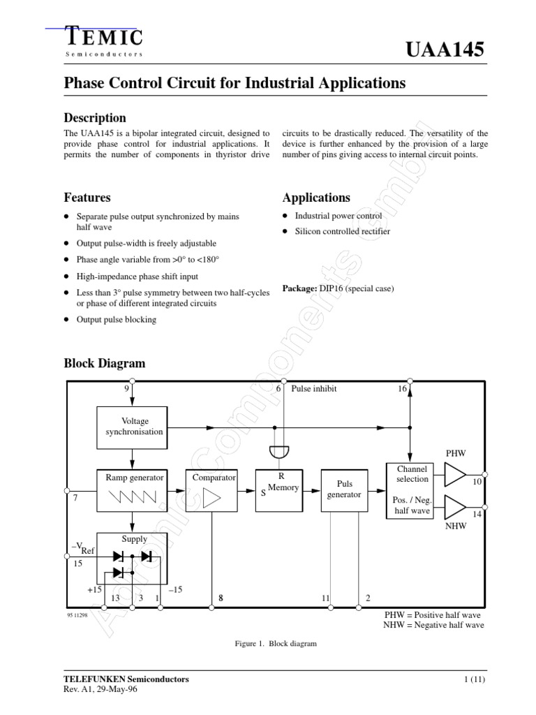D Less than 3° pulse symmetry between two half-cycles Package: DIP16 (special case)