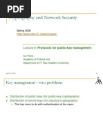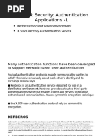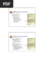 The document discusses X.509 certificate revocation lists (CRLs) and their delivery methods: polling and pushing. It also describes three authentication procedures used in X.509 - one-way, two-way, and three-way authentication. Finally, it outlines some inadequacies of X.509 version 2 certificates and how version 3 addresses these issues by adding new fields and extension fields to convey more information.