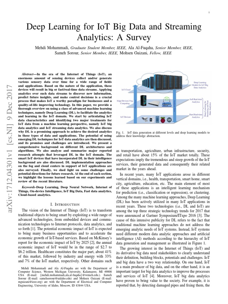 • Time and space correlation: In most of IoT applications, have benefited from DL algorithms. The paper identifies five