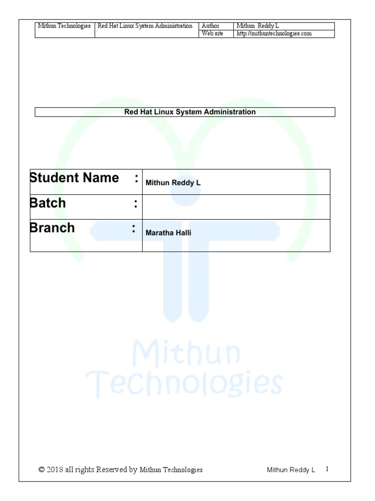 1.0 19.06.2017 Mithun Reddy L Created Mithun Reddy L